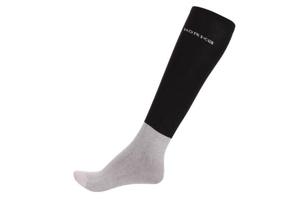 Stevige nylon showsokken met een HORKA logo op de kuitProductspecificaties:- Nylon sokken- Maten: S (31-34), M (35-38), L (39-42), XL (43-46)Materiaal: 55% katoen, 40% polyamide, 5% elastaan