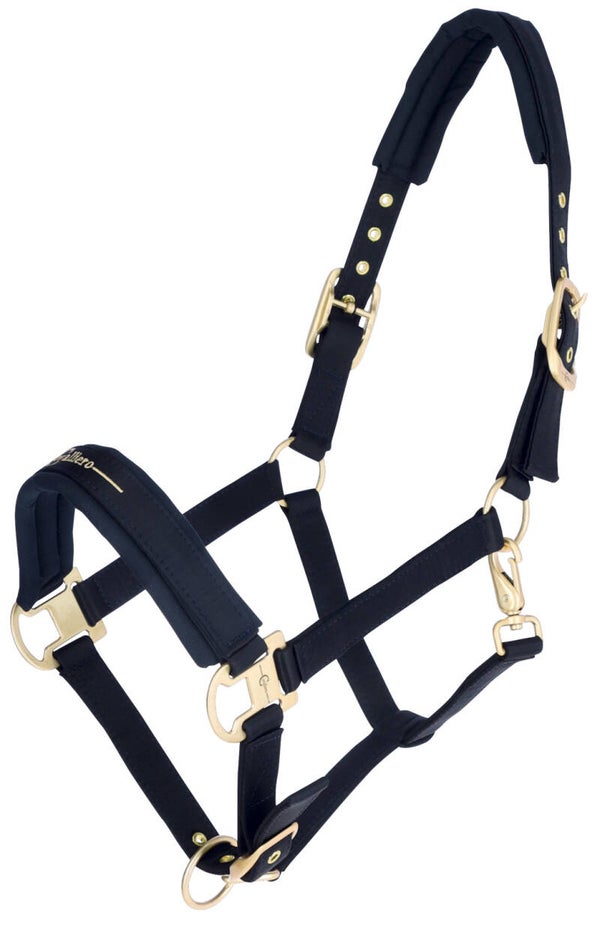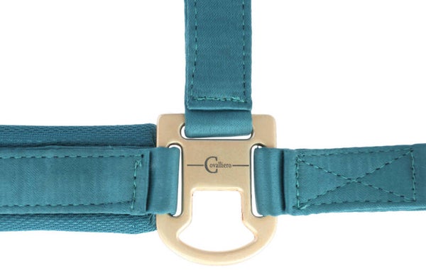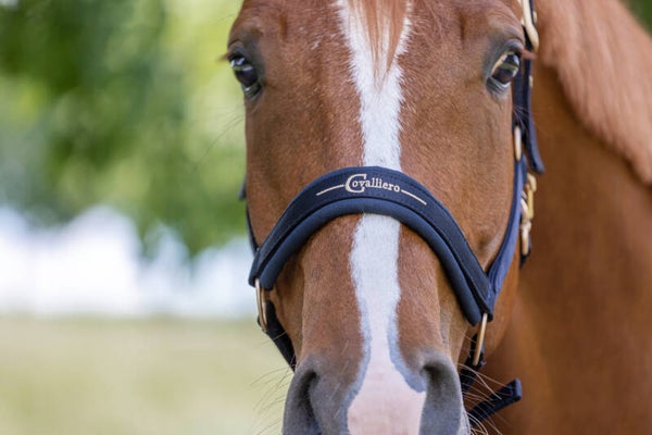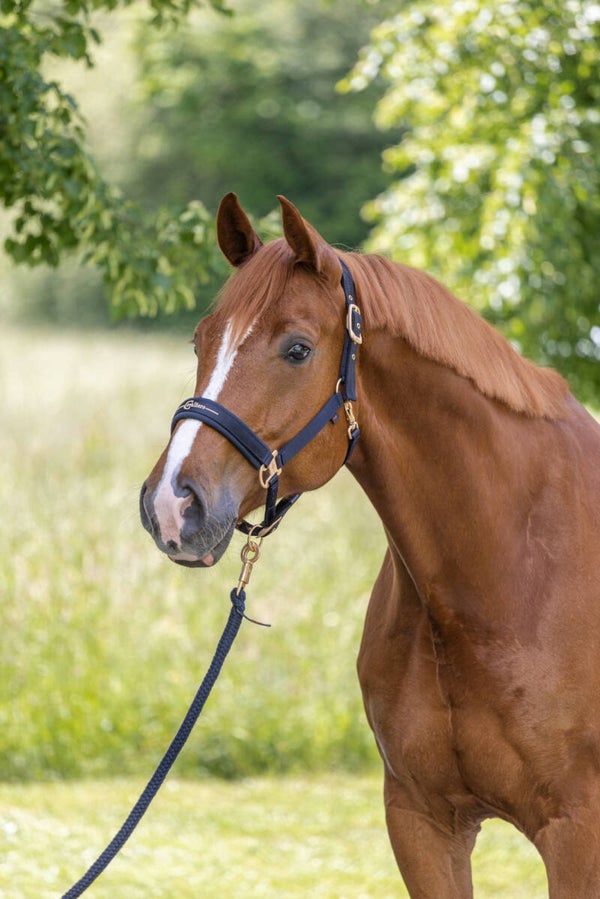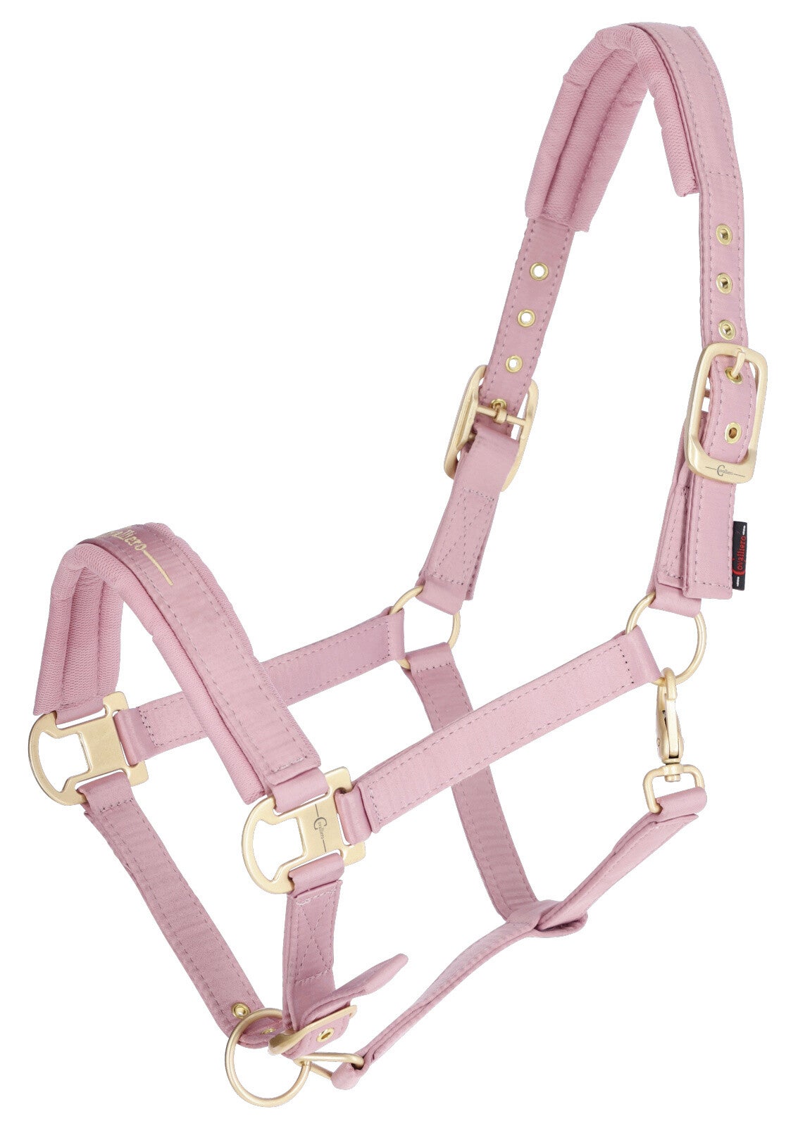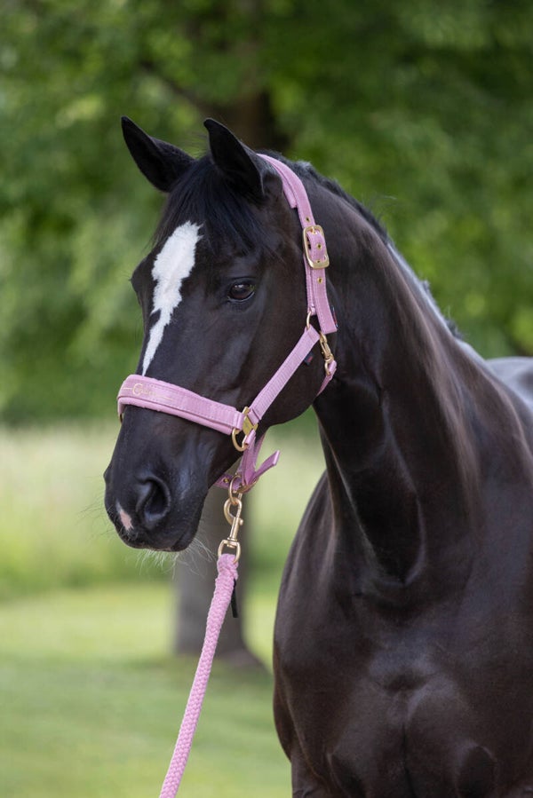 Mooi afgewerkt halster. Zacht onderlegd en met roségouden fournituren.