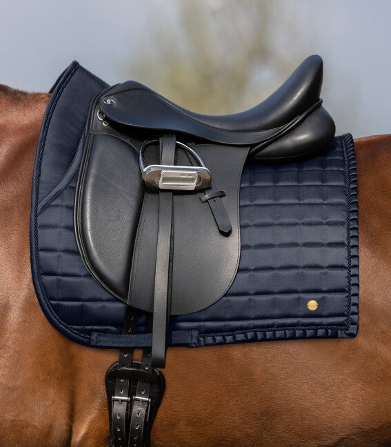 Prachtig zadeldek met contrasterend touw en afwerking in plissé.